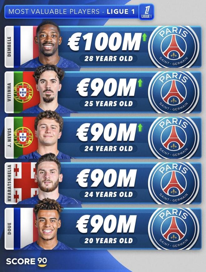 維蒂尼亞(Vitinha/VítorFerreira) | 葡萄牙 | 25歲 | 9000萬歐元